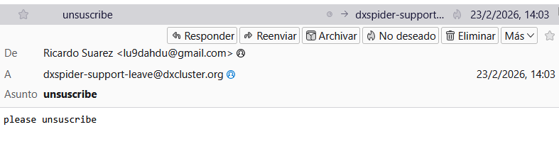 On 25 Feb 2026, at 14:24, Ricardo Suarez via Dxspider-support <dxspider-support@dxcluster.org> wrote: